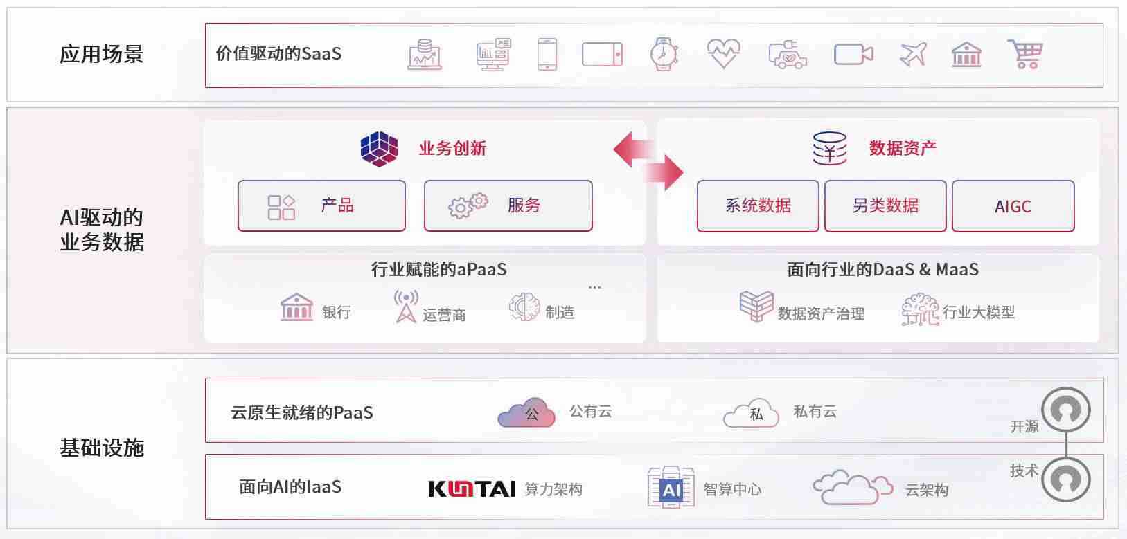 数字时代,,,围绕企业数字化转型的关键要素,,J9直营集团数码开创性的提出数云融合战略和技术体系框架,,着力在云原生、、、、数字原生、、AI原生和信创产业上架构产品和服务能力,,,,为处在不同数字化转型阶段的快消零售、、、汽车、、、金融、、、医疗、、、、政企、、教育、、、、运营商等行业客户提供泛在的敏捷IT能力和融合的数据驱动能力,,,构建跨界融合创新的数字业务场景和新业务模式,,助力企业级客户建立面向未来的核心能力和竞争优势,,,全面推动社会的数字化、、、、智能化转型升级。。